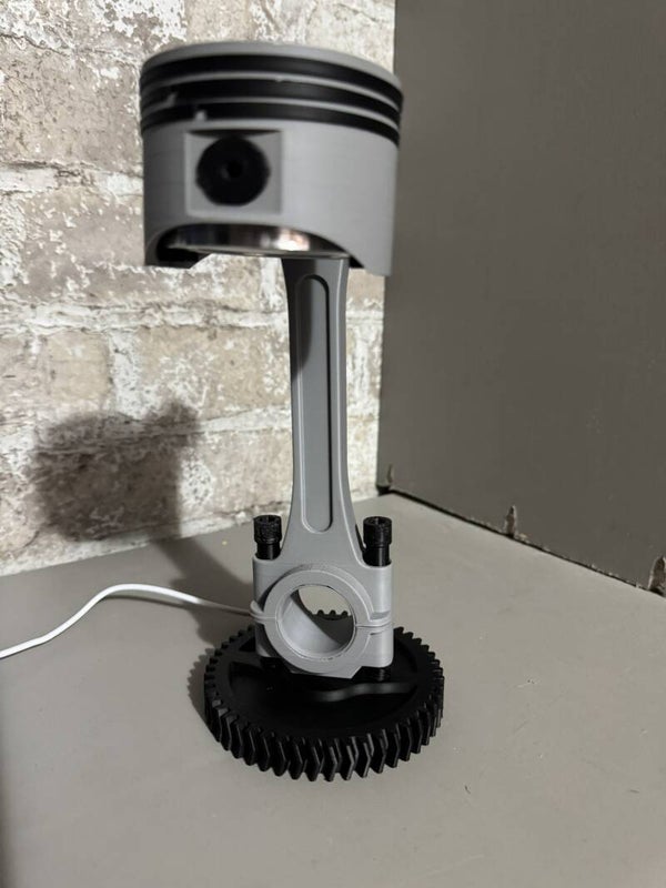 The Engine Piston Lamp is a striking blend of industrial design and practical illumination. Inspired by the mechanics of an engine piston, this unique desk lamp serves as both a functional light source and an eye-catching centerpiece for any workspace. I hope you enjoy it as well! The Engine Piston Lamp embodies the spirit of innovation, making it a must-have for automotive enthusiasts and design aficionados alike.